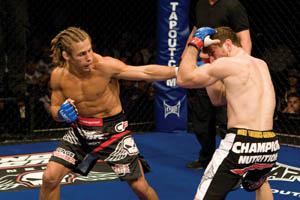 “The mixed-martial-arts lifestyle, for me, has been a lifestyle that revolves around the things I like to do,” he said. “For the guys who are really good at it, it’s just like anything, just like surfing, being a lawyer, but the intensity level is up about 10 degrees. My day is working out, hanging out with my buddies and eating good food. It’s almost like the surf mentality for me, except instead of being on the waves, we’re actually on the mats and in the ring.”
