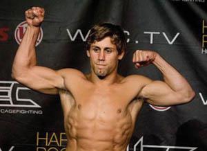 He keeps his medium-length sandy hair tied like Pebbles’ ponytail on The Flintstones, and his shirt is off most of the time. Unlike the taller, more wiry fighters in the WEC’s 145-pound division, Faber is built more like a bull, with wide shoulders and an expansive chest, perfectly tanned.