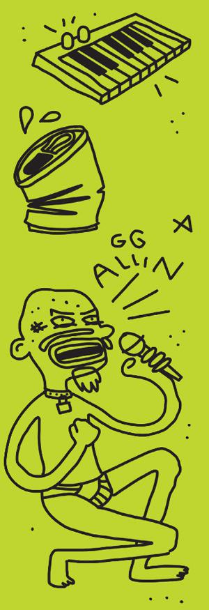 “[The Four Eyes] were most excited about the fact that we could perform as GG Allin,” recalls Joel Goulet of his first Halloween Show. He broke the third rule: The Four Eyes are a three-piece punk band from Sacramento. “We had a fascination with GG Allin, as everyone does.”