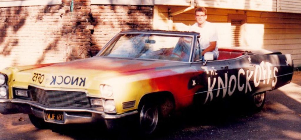 Once upon a time, the Knockoffs were so big they had their own Cadillac—pictured here with founding member Tim White. PHOTO COURTESY OF THE KNOCKOFFS