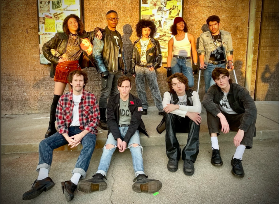 Mike Infante behind the scenes with fellow cast members on the set of “Freaky Tales.” Featured in the photo is Ji-young Yoo and Jack Champion, playing the roles of Tina and Lucid respectively, a punk couple who prepares to combat an incoming threat to the Gilman venue. (Photo courtesy of Mike Infante)