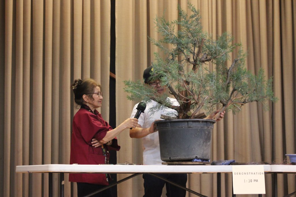 That afternoon, bonsai instructor Sam Adina prepped a California juniper during a demonstration that he said he collected from the wild about 15 years ago; the tree was estimated to be over 100 years old.