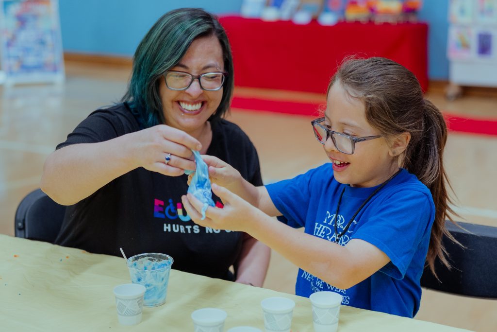 Jeremiah was diagnosed with ASD at the age of four. He goes to school with Byrd’s son and the families are friends. At one point during the day, Jeremiah took time to relax in the Calming Room, which was filled with books, fidgets, and sensory boxes in the library.
