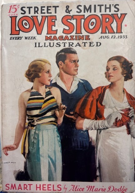 Early California Writers Club member Alice Marie Dodge wrote for pulps as soon as she could find an editor, likely before 1925. True Story, touted as the first “confession”magazine, kept readers turning pages as did Street & Smith’s Love Story Magazine, Droll Stories, Young’s Realistic Stories, Sweetheart Stories, and Trapped Detective Story Magazine. “The Nymph and the Doctor” and “The Torso by the Road” are but two of her titles. Other authors lured readers with “Blonde by the Roadside,” “Killer in the Closet,” “Finger Man,” “Murder in the Elevator,” “One Night of Folly,” and “Suicide Bridge”.