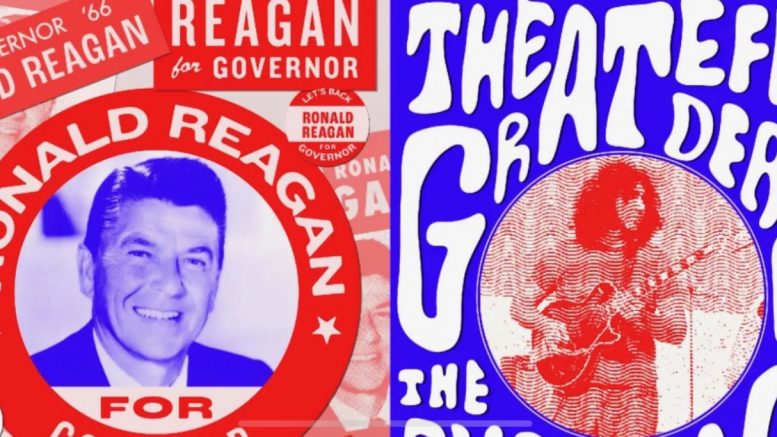 As Reagan stalked Pat Brown, Jerry Garcia responded with what looked like indifference. Reagan denounced drugs and young misfits; Garcia and the Dead dropped acid and performed, every bit the misfits that Reagan made them out to be. Through the winter and spring of 1966, they moved up and down the coast, crisscrossing Reagan’s campaign and ignoring the candidate’s challenge to everything they stood for.