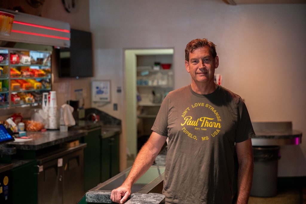 Crest Theater Owner and Manager Robert “Bob” Emerick at the concession stand on Tuesday, Sept. 23. (Photo by Cristian Gonzalez)