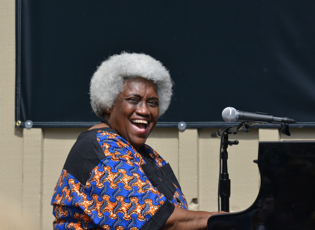 Tammy Hall hits the ivory keys at the Monterey Jazz Festival. Photograph by Solomon
