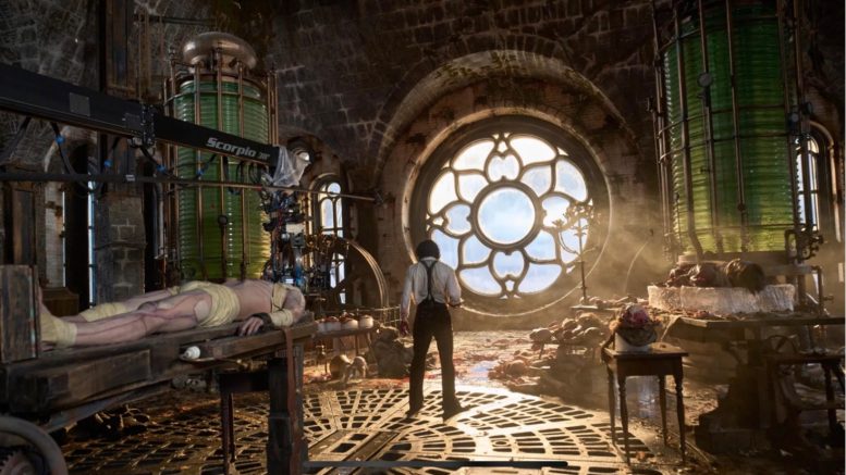 Much of the film takes place on sets, depicting Frankenstein’s lab and a giant ship stuck in ice—fully constructed, practically created sets. There is some old-school Hollywood magic going on here.