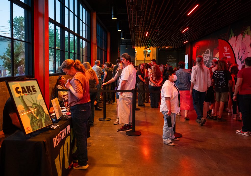 Each of the three Cake concerts from Saturday, March 21 to Monday, March 23 were sold out. (Photo by Xavier Figueroa)Fans get their tickets scanned for the sold-out Cake show at Channel 24 on Saturday, March 21. (Photo by Xavier Figueroa)Attendees waiting to get Cake merchandise at Channel 24 on Saturday, March 21 in Sacramento. (Photo by Xavier Figueroa)Cake performs for a sold-out solo show at the 2150-capacity Channel 24 on Saturday, March 21 in Sacramento. (Photo by Xavier Figueroa)Cake hosts a sold-out solo show at Channel 24 on Saturday, March. 21 in Sacramento. (Photo by Xavier Figueroa)