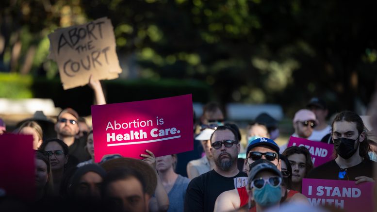 Pro-abortion rights supporters marched in protest of a Supreme Court ruling that overturned Roe vs. Wade, in Sacramento on June 25, 2022. Photo by Miguel Gutierrez Jr., CalMatters